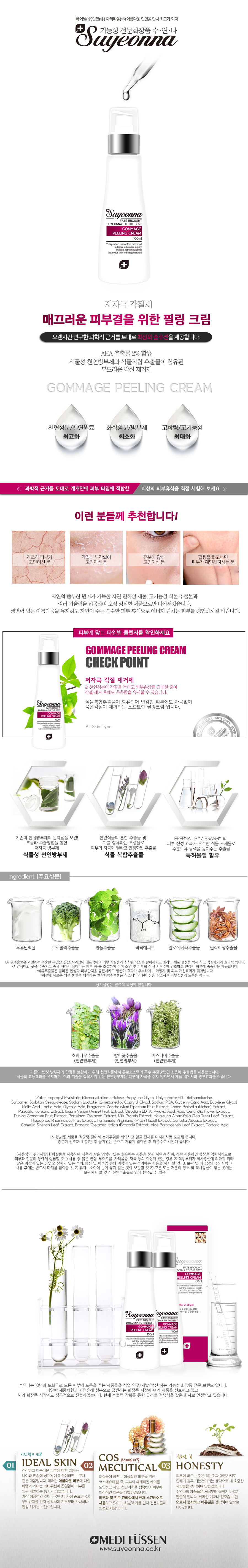 매끄러운 피부결을 위한 필링크림, 식물성 천연방부제와 식물복합 추출물이 함유된 부드러운 각질 제거제입니다.